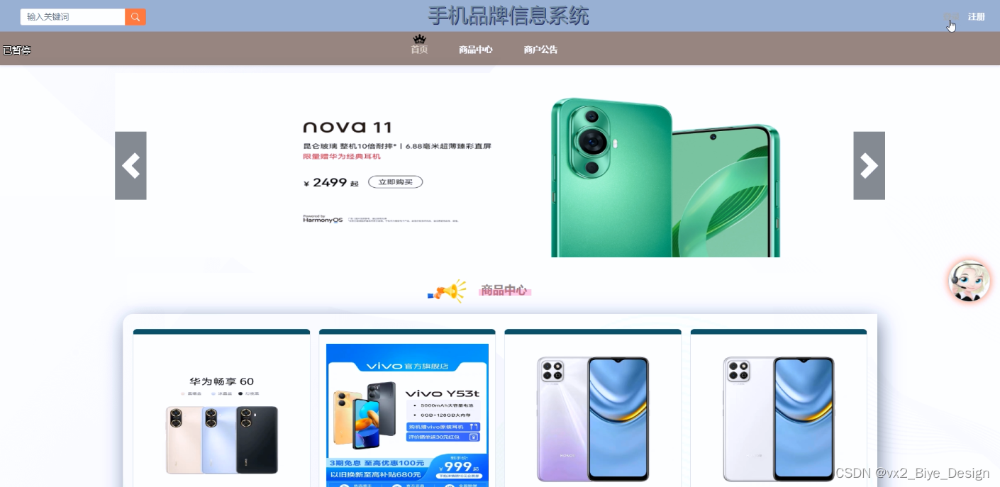 The main functional modules of the mobile phone brand information system include personal information (personal information, password modification), public management (broadcast image), announcement management (announcement), user management (administrator, ordinary user, seller), customer message, merchant public, sales statistics, product center, classification list, and order list. The software development and hardware installation adopt an object-oriented development model, which can well meet the actual needs of use, We have improved the corresponding software installation and program coding work, using MySQL as the main storage unit for backend data, and using the SSM framework and Java language for business system coding and development, achieving all the functions of this system. This report first analyzes the background, role, and significance of the research, laying the foundation for the rationality of the research work. Analyze the various requirements and technical issues of the mobile phone brand information system, prove the necessity and technical feasibility of the system, and then provide a basic introduction to the technical software and design ideas required for designing the system. Finally, implement the mobile phone brand information system and deploy it for operation.