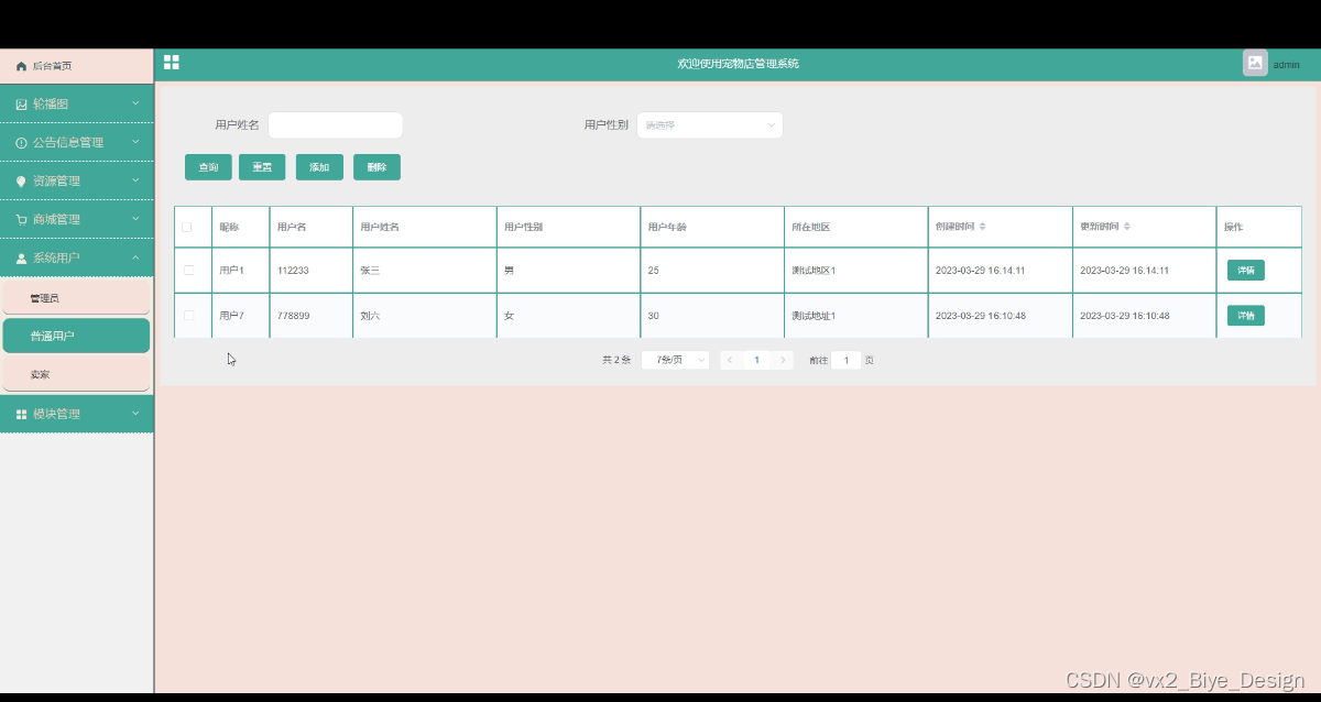 3、功能的完善性:拥有首页,轮播图管理,公告信息管理,资源管理,商城管理(宠物信息,分类列表,订单列表),系统用户,模块管理(咨询卖家,物流信息,提醒发货)等模块的修改维护操作。