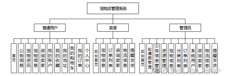 (1)功能要求:首页,轮播图管理,公告信息管理,资源管理,商城管理(宠物信息,分类列表,订单列表),系统用户,模块管理(咨询卖家,物流信息,提醒发货)等功能模块。