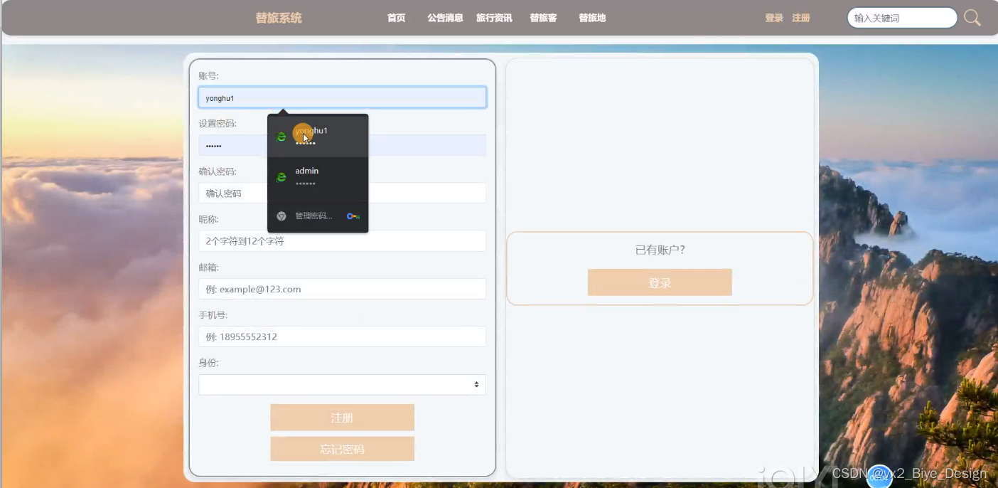 替旅系统管理系统登录界面,通过填写账号、密码、等信息进行登录,如图5-7所示。