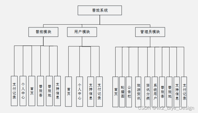 这些功能可以充分满足替旅系统管理系统的需求。此系统功能较为全面如下图系统功能结构如图4-5所示。
