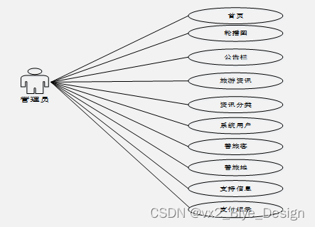 (3)确定好系统使用的技术,进行在线确认系统所划分的用户角色,并且根据用户角色划分确定所要设计的功能模块,对于替旅系统管理系统系统的设计主要划分别为管理员和用户角色,并所使用的功能模块也相应不同,但是系统的数据库实现的内容是交互的,用户可以随时根据自己的需求进行课程信息,对于系统工作人员可以根据自己的分管内容进行在线信息的处理及操作,管理员获取到所有用户的详细数据信息,并根据需求进行第一时间处理解决。