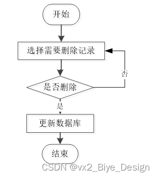 用户选择要删除的信息并单击Delete按钮。系统提示是否删除信息。如果用户想要删除信息,系统将删除信息。系统数据库删除信息。删除信息流程图如图3-5所示。