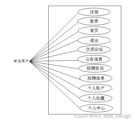图2.1 高校毕业生招聘管理信息系统中学生用户角色用例图