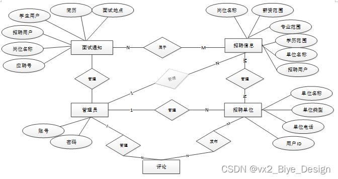 下面是整个高校毕业生招聘管理信息系统中主要的数据库表总E-R实体关系图。