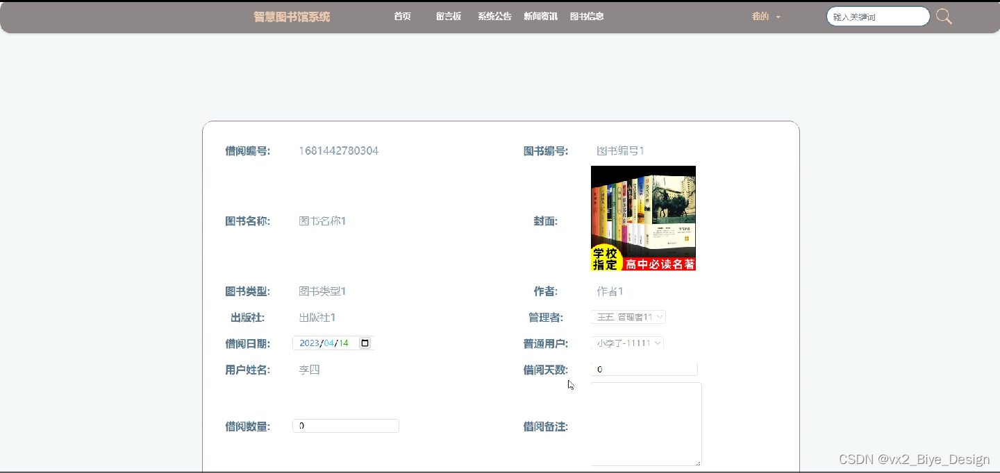 (5)图书管理者可以对读者的借阅信息进行图书归还和审核的操作。