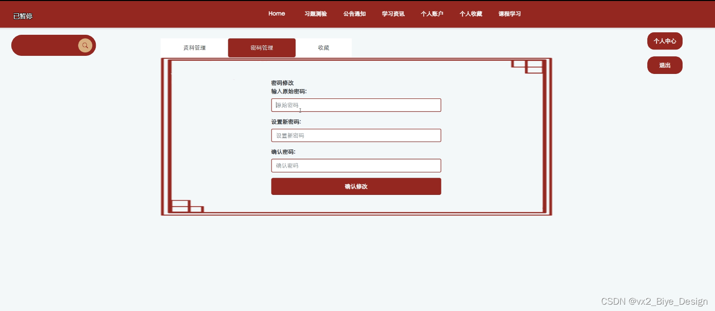 (5)个人中心:当用户点击右上角“个人中心”这个按钮,就会进入到对应的后台进行信息的管理了;