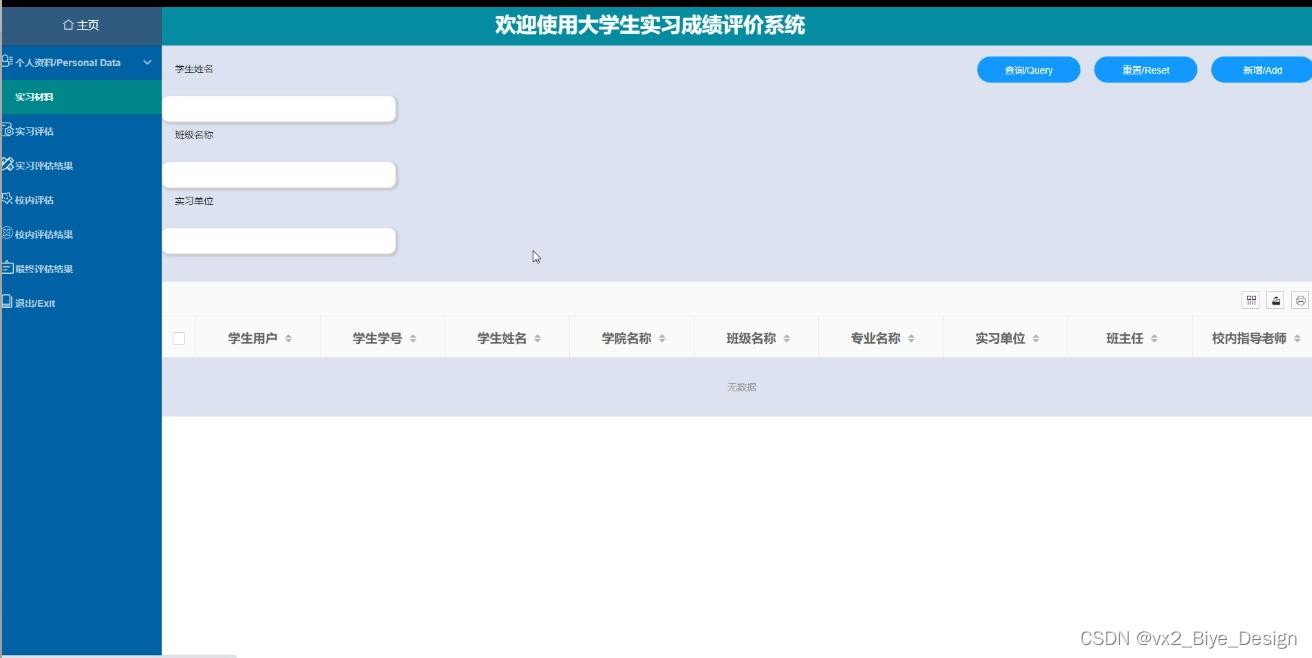 本文介绍了一个使用Java技术和SSM框架开发的大学生实习成绩评价系统,该系统针对不同用户角色如管理员、学生、班主任、校内外指导老师提供了不同的功能模块,包括信息管理、实习评估和成绩记录等。系统采用B/S结构,利用Mysql数据库存储数据,确保了数据的安全性和稳定性。在可行性分析中,系统在技术、经济、操作和法律方面均具备可行性。通过详细的设计和测试,系统实现了预期功能,具有较好的用户体验和实用性。