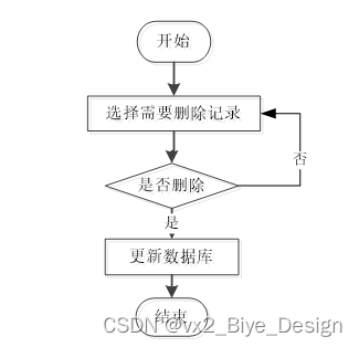 管理员可以对信息等进行信息的删除,对要删除的信息进行选中后,点击删除按钮,系统会询问是否确定,若点击确定,则系统会删除掉选中的信息,并在数据库内对信息进行删除,删除信息流程图如图3-6所示。