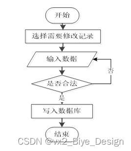 管理员可以对信息等进行的修改,大学生实习成绩评价也可以对自己权限内的信息进行修改,首先进入修改信息界面,输入修改信息数据,系统进行数据的判断验证,修改信息合法则修改成功,信息更新至数据库,信息不合法则修改失败,重新输入。修改信息流程图如图3-5所示。