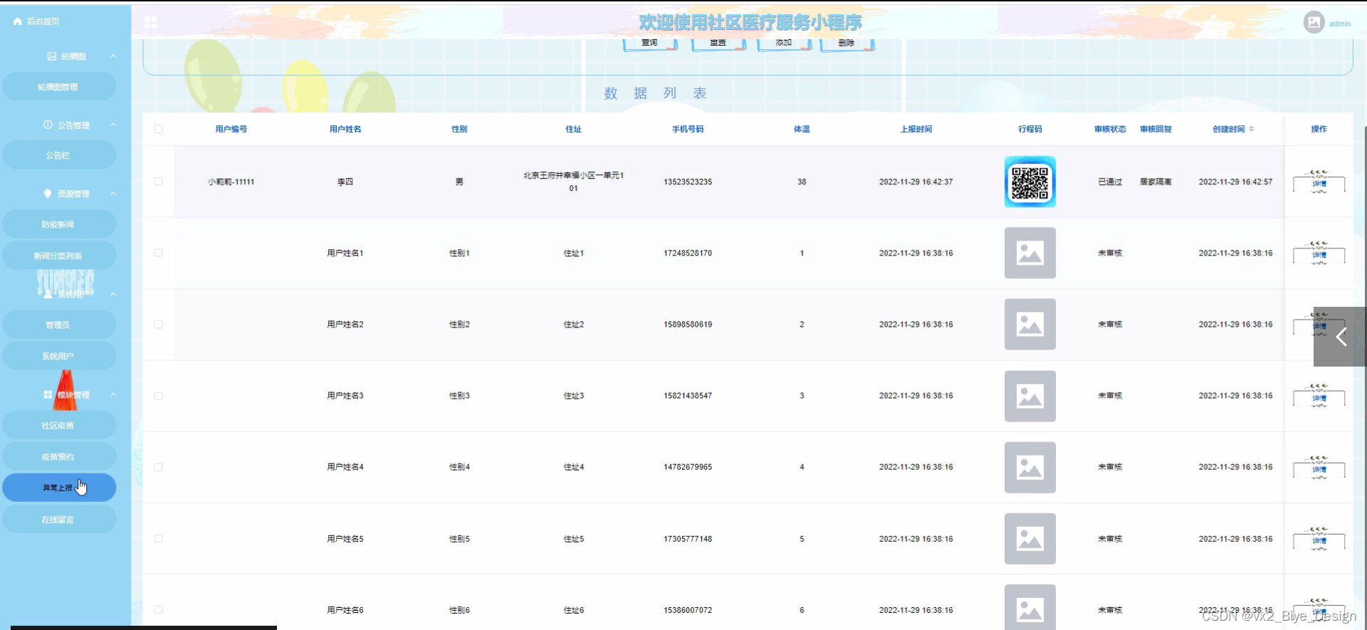 With the rapid development of China's economy, people's demand for mobile phones is growing, and various mobile phone software are also widely used. However, data information management for mobile phones and various software for mobile phones are also popular among users. Community medical service applet management system is widely used by users, so that users can manage data information of community medical service applet management system at any time, The management system based on the small program management system of community medical service is specially developed.