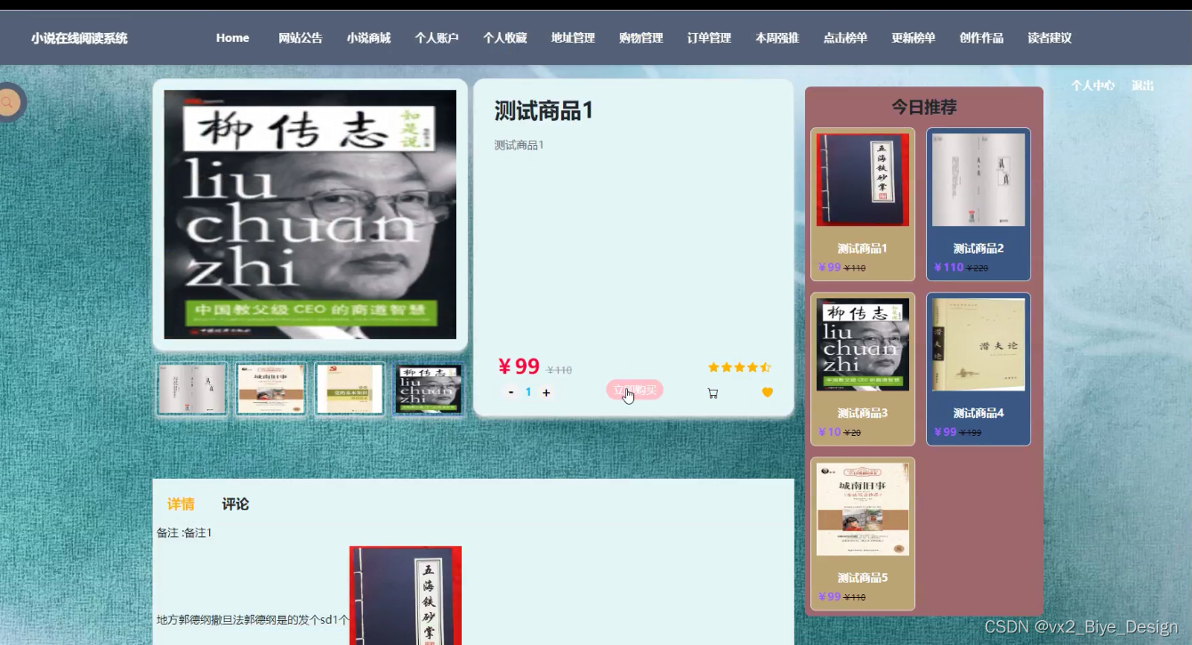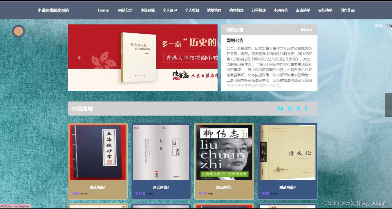 In terms of system design, the B/S structure is adopted. At the same time, java technology is also used to design the dynamic page. MySQL database is used in the background. It is a very excellent online novel reading system.