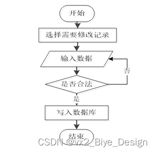 管理员可以对信息等进行的修改,用户也可以对自己权限内的信息进行修改,首先进入修改信息界面,输入修改信息数据,系统进行数据的判断验证,修改信息合法则修改成功,信息更新至数据库,信息不合法则修改失败,重新输入。修改信息流程图如图3-5所示。