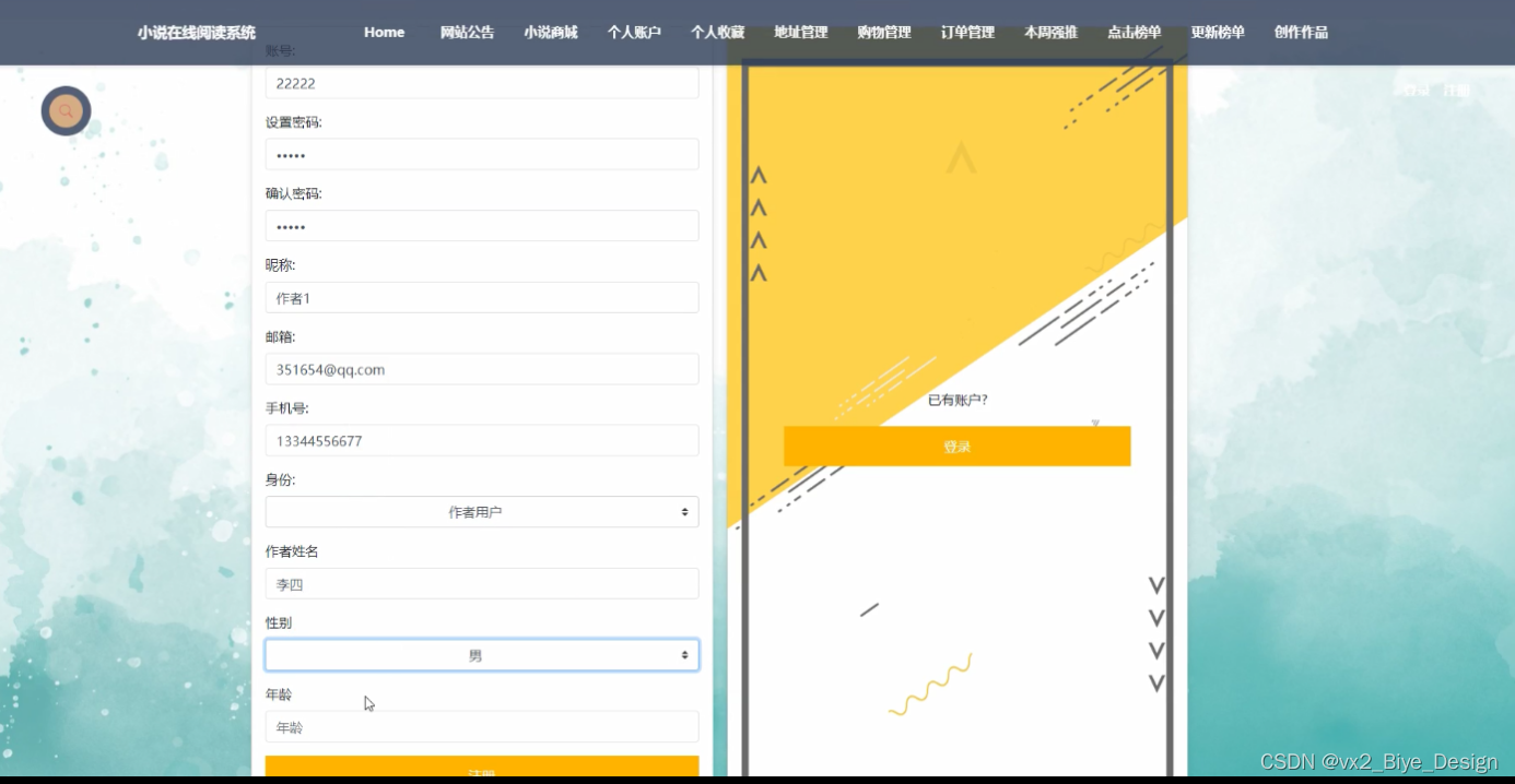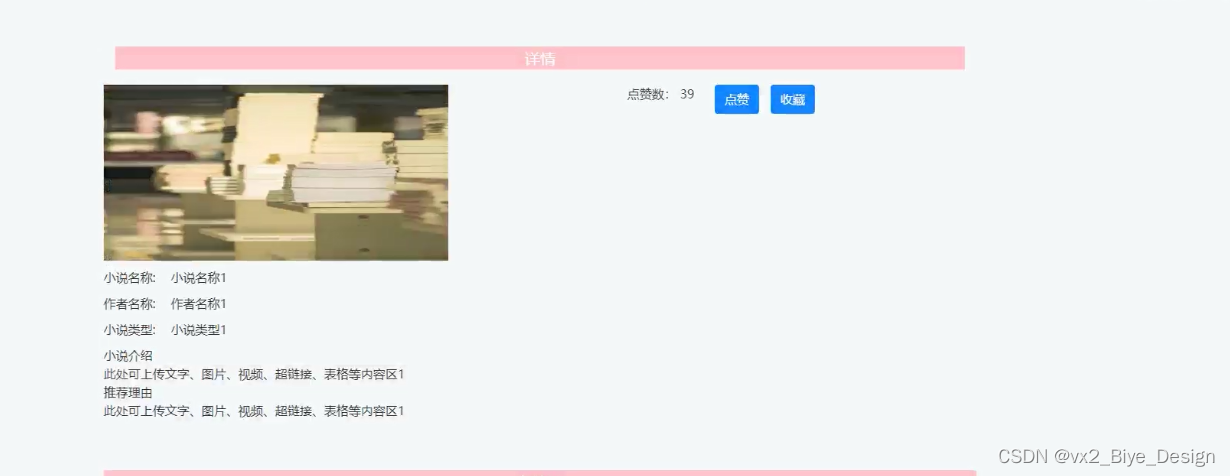 具体在系统设计上,采用了B/S的结构,同时,也使用java技术在动态页面上进行了设计,后台上采用Mysql数据库,是一个非常优秀的小说在线阅读系统。