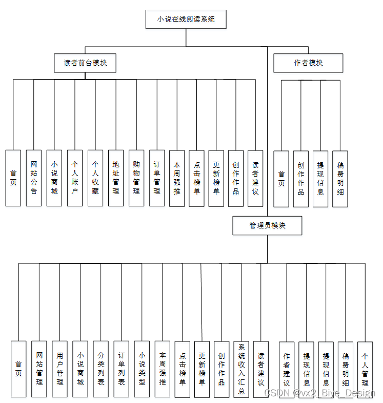 系统架构图属于系统设计阶段,系统架构图只是这个阶段一个产物,系统的总体架构决定了整个系统的模式,是系统的基础。小说在线阅读系统的整体结构设计如图4-2所示。
