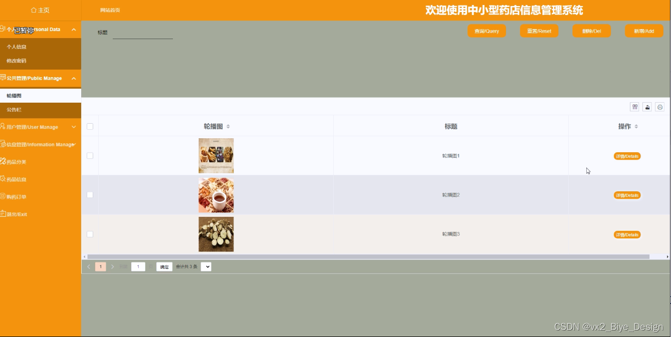 (1)公共管理:管理员可以对系统前台展示的公告栏以及轮播图进行增删改查,方便用户进行查看。