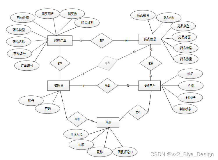 下面是整个中小型药店信息管理系统中主要的数据库表总E-R实体关系图。