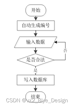 用户成功登入系统后就能够实现增加数据的操作,增加数据的编号是特定的,系统生成,用户不能随意填写,除了编号以外,其他增加信息用户自己填写,填写后的信息经过系统验证,验证合法通过就显示增加数据成功了,相反的话,就没有增加成功,图2-1显示的就是在增加数据时的流程。