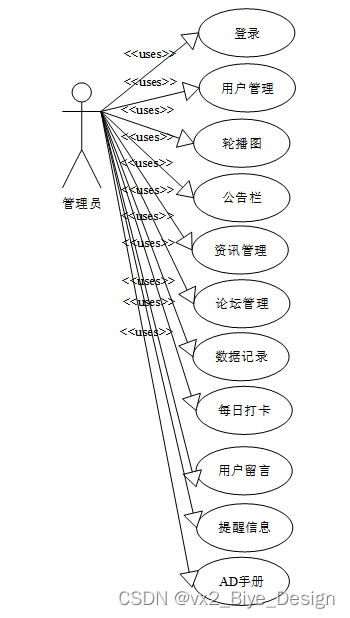 阿尔茨海默病预防的交互式网站的功能主要分为前台用户根据自己的需求进行注册登录,浏览族谱申报信息并对选中的族谱申报进行发布操作。后台系统管理员因职责的不同,分为普通管理员和超级管理员,管理员主要对注册用户,数据记录、每日打卡、用户留言详细信息,AD手册详细信息进行处理。
