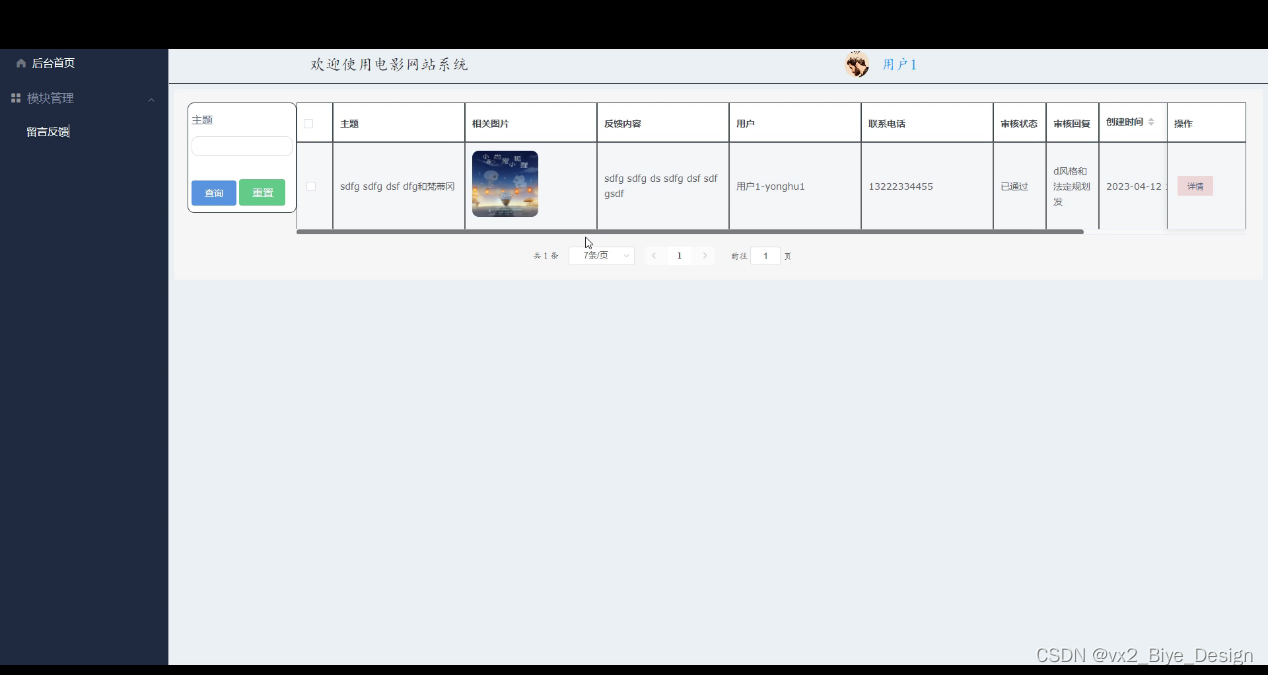 留言反馈,管理员在此界面可维护管理用户提交的留言反馈,还可在此页面对进行重置,删除,添加,审核等操作,如下图所示: