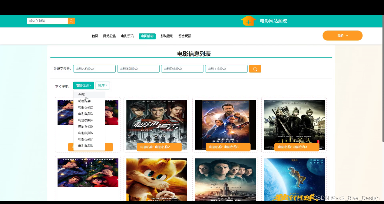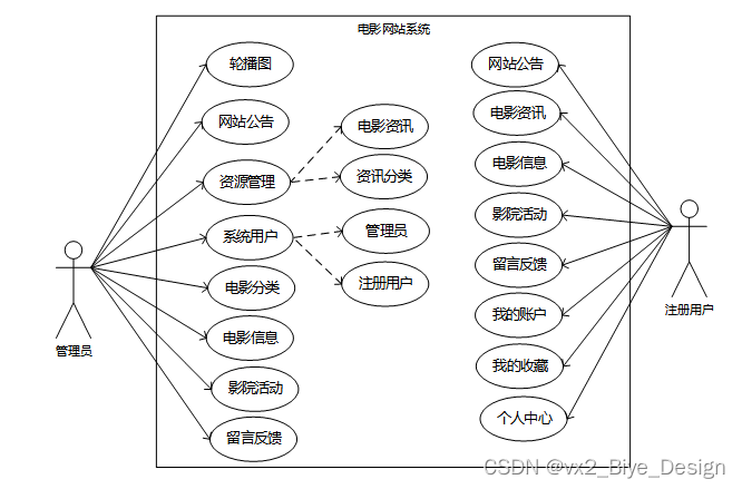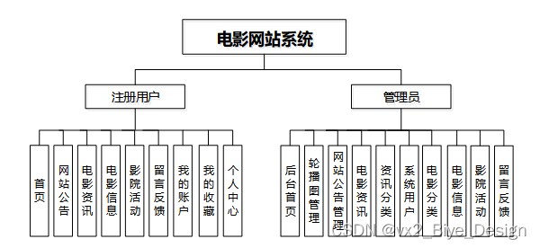 (1)功能要求:首页,轮播图管理,网站公告管理,资源管理(电影资讯,资讯分类),系统用户(管理员,注册用户),模块管理(电影分类,电影信息,影院活动,留言反馈)等功能模块。