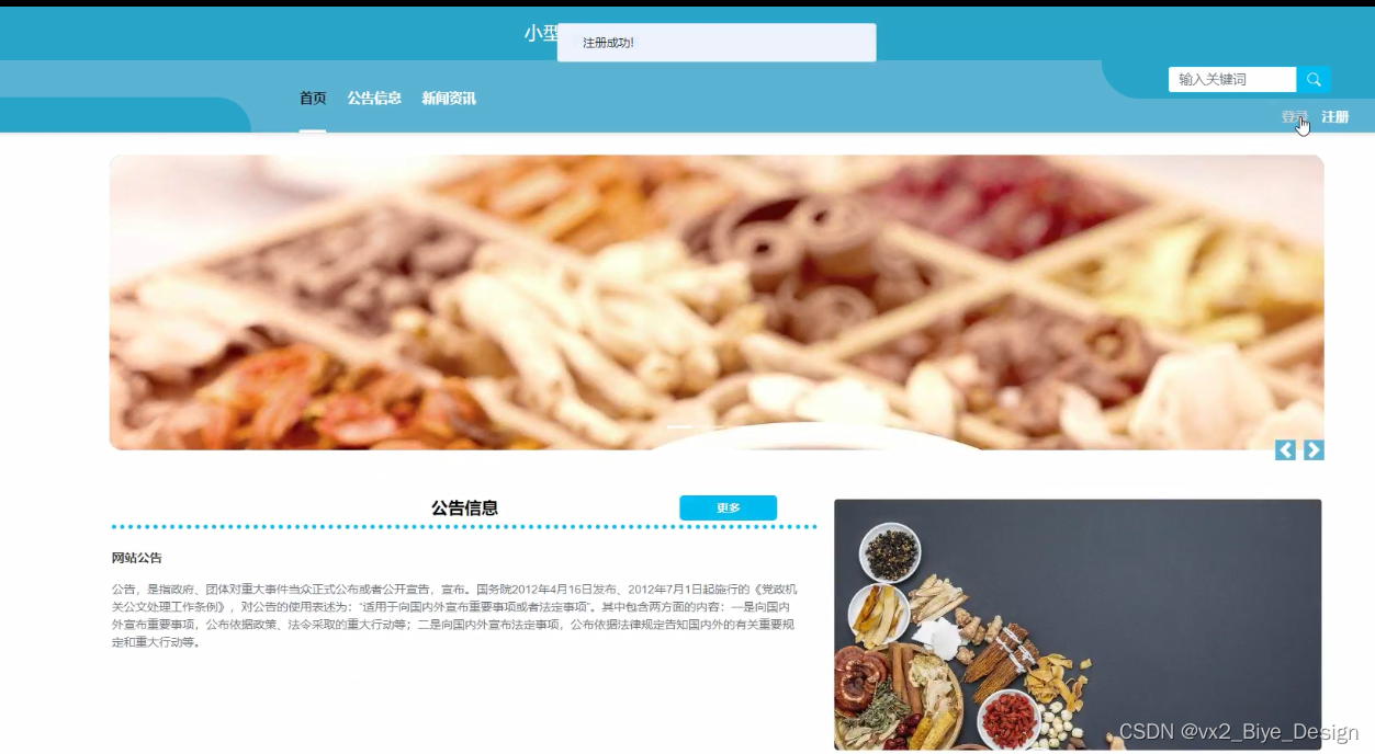 系统前台功能,用户登录页面可游览系统主页信息,如图5-8所示: