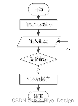 用户成功登入系统后就能够实现增加数据的操作,增加数据的编号是特定的,系统生成,用户不能随意填写,除了编号以外,其他增加信息用户自己填写,填写后的信息经过系统验证,验证合法通过就显示增加数据成功了,相反的话,就没有增加成功,图2-1显示的就是在增加数据时的流程。