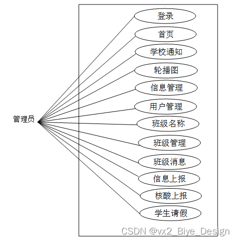web后台管理上的管理员是维护整个校园疫情防控管理系统中所有数据信息的。管理员角色用例如图2-4所示。