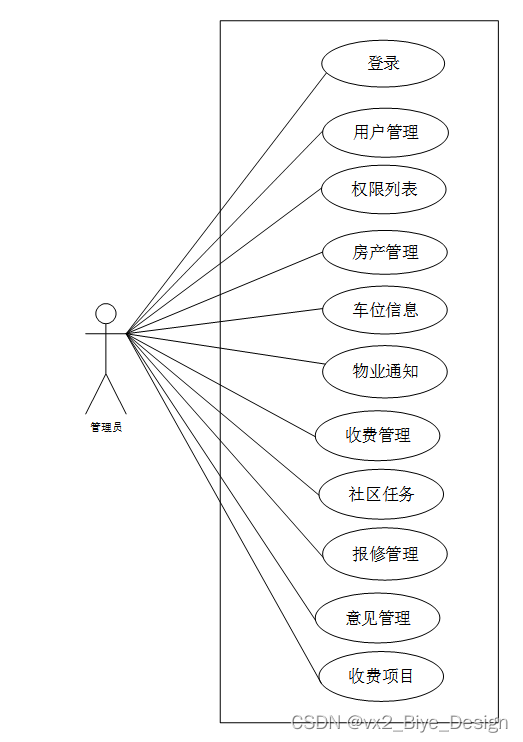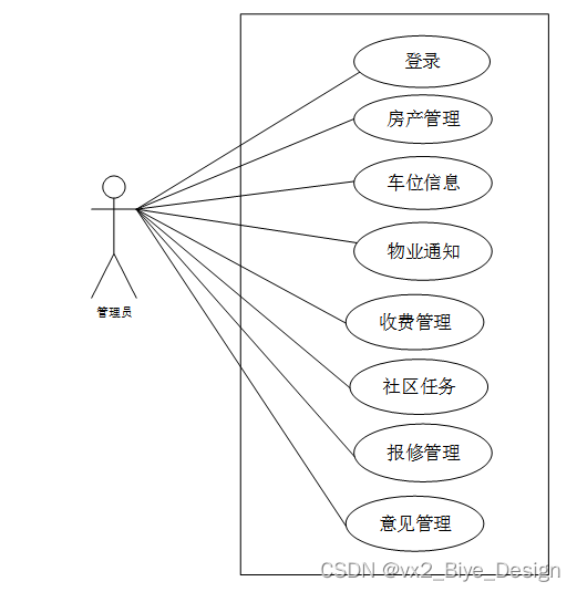 小区物业管理系统中管理员角色用例图如图3.2所示: