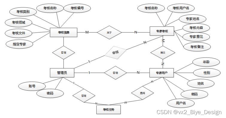 从前面可以分析到数据库中最重要的是专家信息,考核信息,管理员信息。分析可以得到如下数据描述: