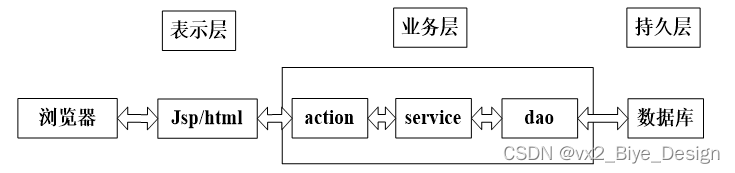 目前B/S体系的系统主要的数据访问方式是:通过浏览器页面用户可以进入系统,系统可以自动对用户向服务器发送的请求进行处理,处理请求是在系统后台中进行的,用户在浏览器页面上进行相应操作,就能够看到服务端传递的处理结果。数字教务管理系统主要分为视图-模型-控制三层架构设计。在视图层中,主要是操作在服务器端向客户端反馈并显示的数据,在模型层中,主要处理相关的业务逻辑、数据整合等,最后的控制层它介于视图和模型之间,主要是调整两层之间的关系,最终落实数据的传递。