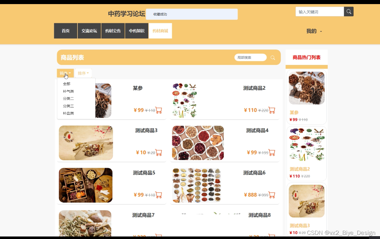 中药药材:用户可以查看中药药材的信息,并可以加入购物车。