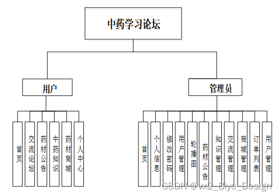 中药学习论坛总体分为前台用户模块和后台管理员模块。