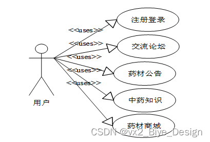 中药学习论坛的功能主要分为前台用户根据自己的需求进行注册登录,对中药药材、公告资讯进行浏览。后台系统管理员主要对用户管理、商品类型管理、中药药材管理、系统管理、订单管理等详细信息进行管理。