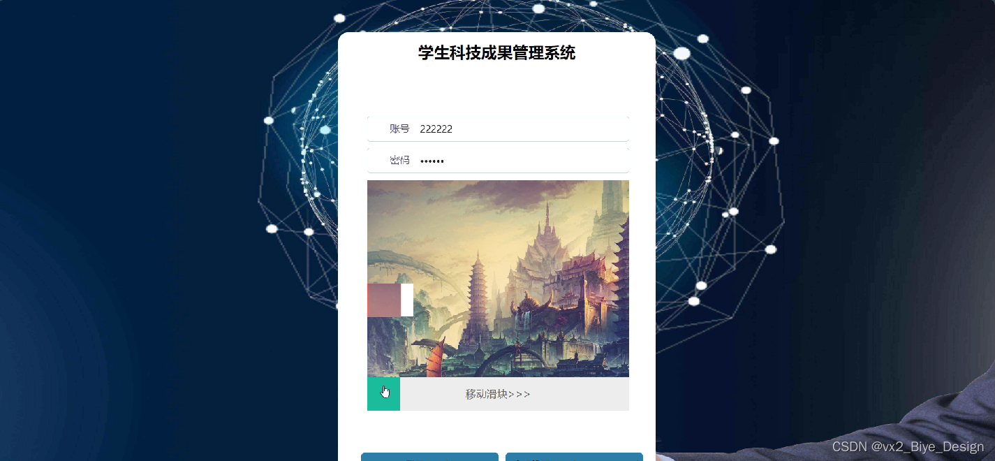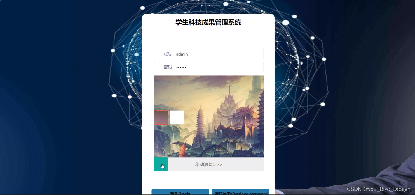 学生科技成果管理系统,在系统登录页面教师用户填写账号、密码等信息滑动滑块进行验证登录,如图5-14所示。