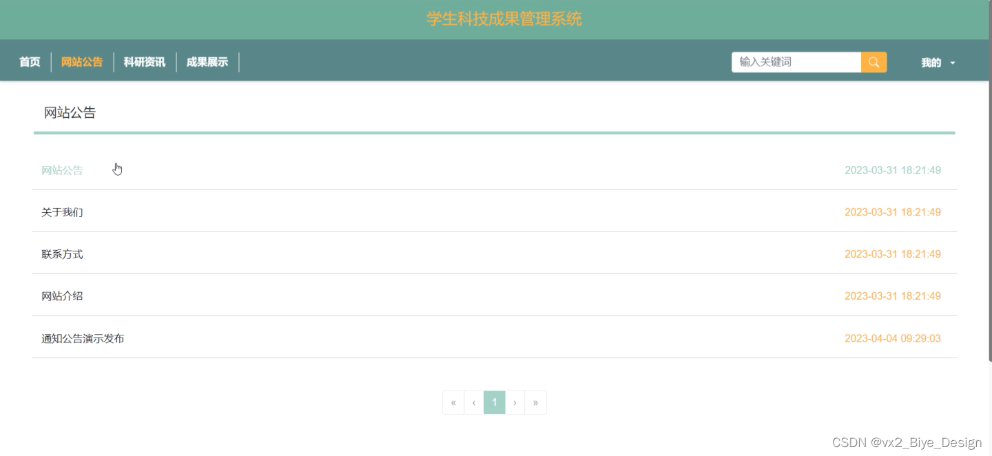 本设计主要实现集人性化、高效率、便捷等优点于一身的学生科技成果管理系统,完成主页、个人资料、用户管理(管理员、学生用户、教师用户)公共管理(轮播图、网站公告)信息管理(科研资讯、资讯分类)学生信息、科研成果、成果分析、成果展示、专业名称、科研类别等功能模块,系统通过浏览器与服务器进行通信,实现数据的交互与变更。只需通过一台电脑,动动手指就可以操作系统,实现数据通信管理。整个系统的设计过程都充分考虑了数据的安全、稳定及可靠等问题,而且操作过程简单。本系统通过科学的管理方式、便捷的服务提高了工作效率,减少了数据存储上的错误和遗漏。