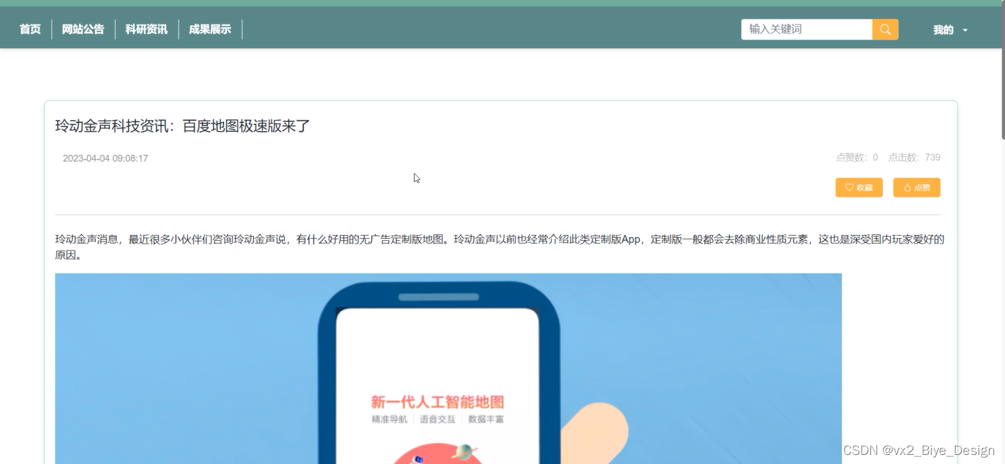 科研资讯:用户可在此页面搜索查看科研资讯信息,对喜欢的科研资讯可进行点赞、收藏、发表评论等操作,如图5-13所示。