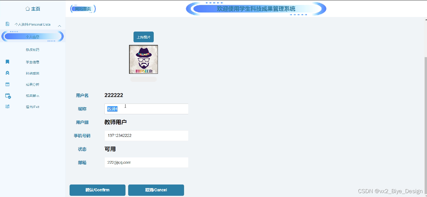 个人信息:教师用户在此页面可对自己的个人信息进行修改等操作,如图5-16所示。