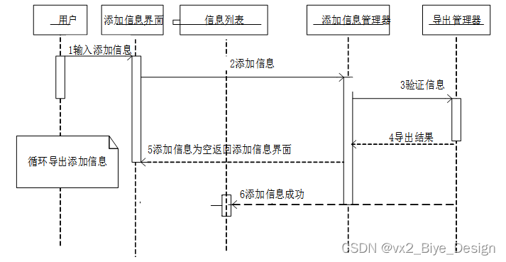 管理员、用户登录后均可进行添加信息操作,添加信息模块顺序图如图4-4所示。