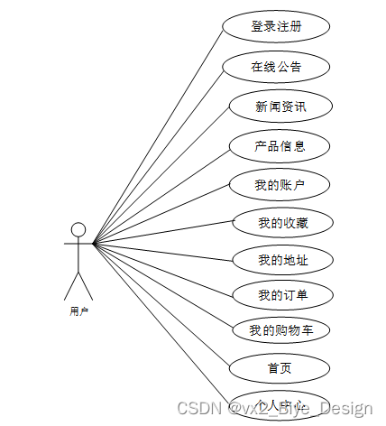 通过2.3功能的分析,得出了本“蒜辣吧”蒜产品销售系统 的用例图: