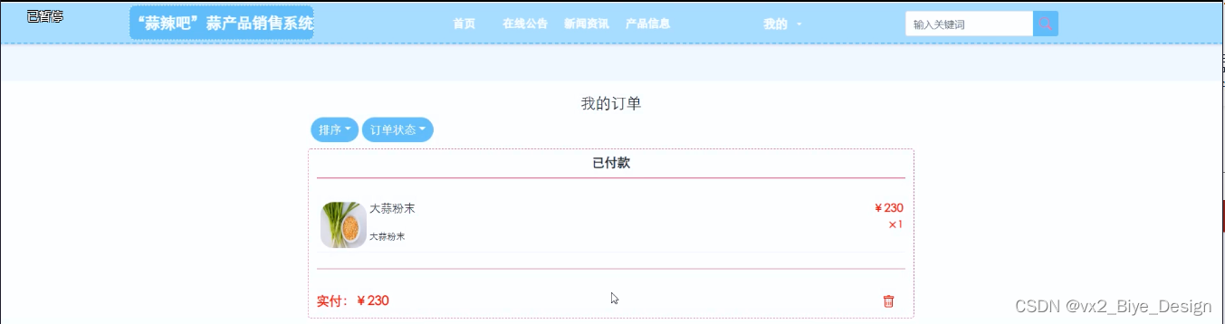 (6)我的订单:用户在提交订单后,可以对提交的订单进行管理。