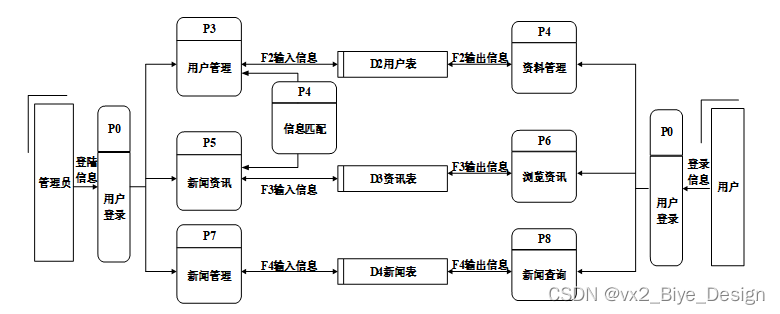 对系统的数据流进行分析,系统的使用者分为二类,一般用户,管理员。系统主要对界面信息传送,登录信息的验证,注册信息的接收,用户各种操作的响应做处理。