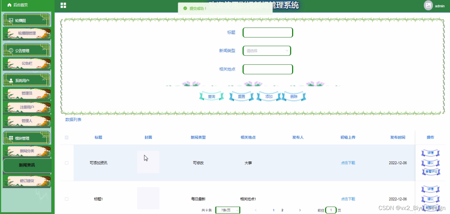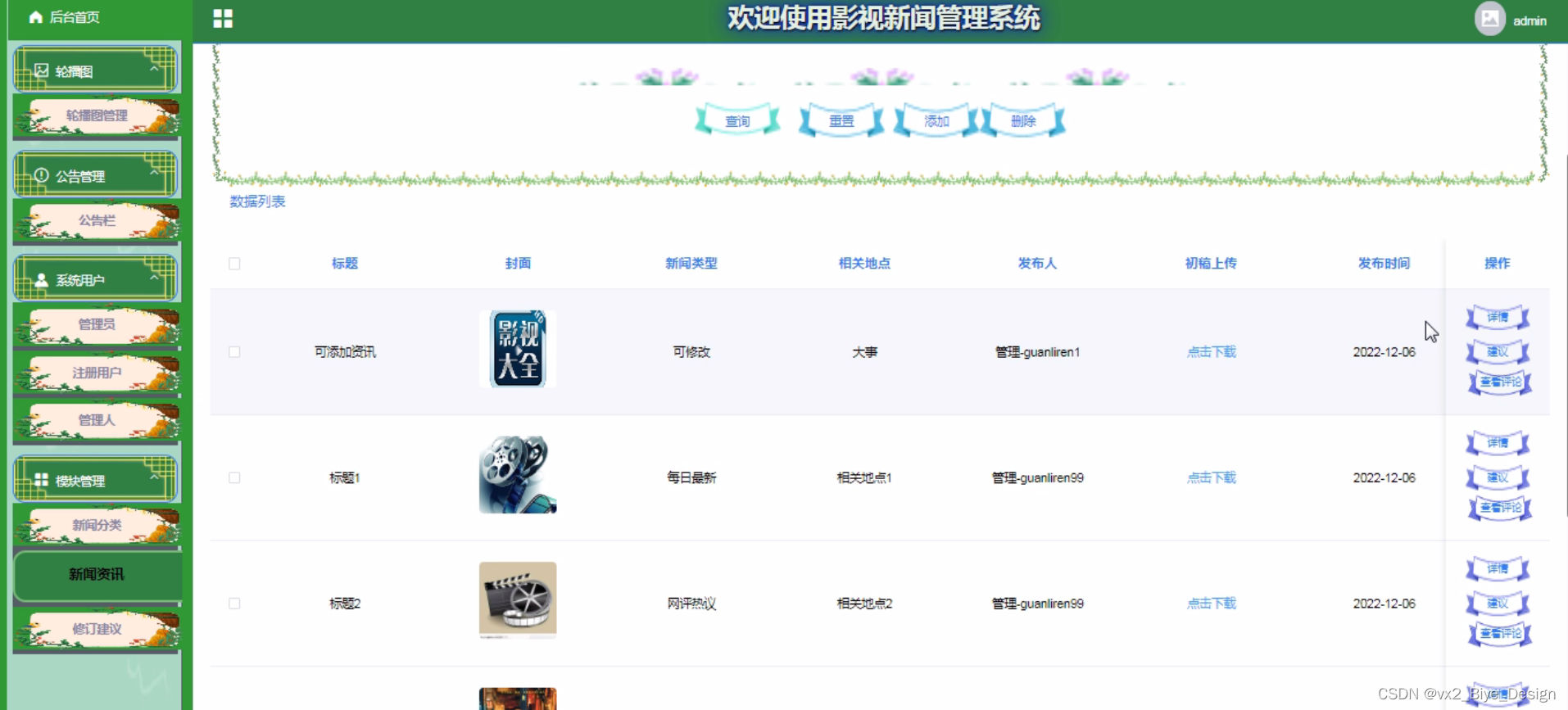 新闻信息管理:对新闻信息进行维护,添加、删除、修改信息。