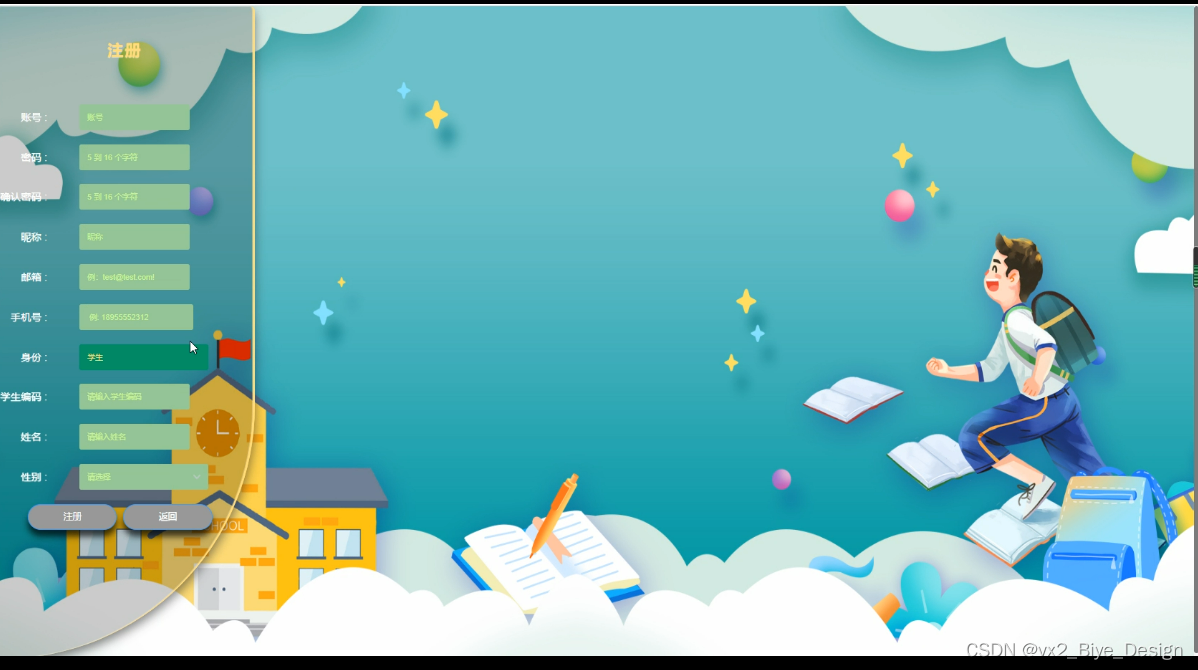 学生功能模块用户模块包括:个人中心、教材列表,学生领书;