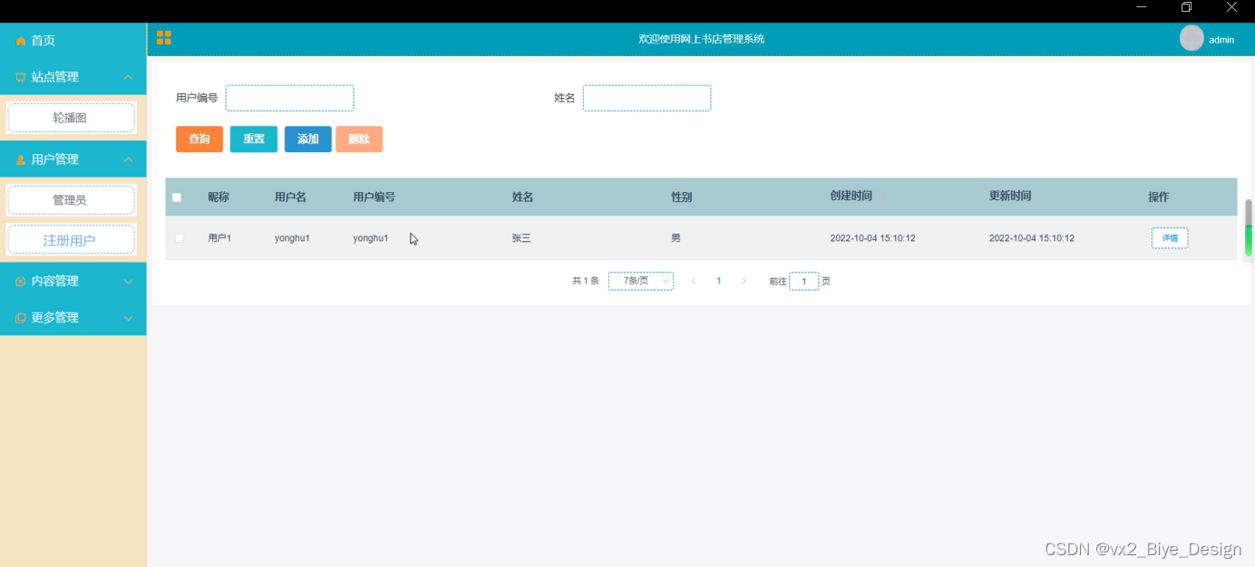 用户管理,在用户管理页面可以对管理员、学生、教师、等信息进行删除,修改等操作,如图5-10所示。