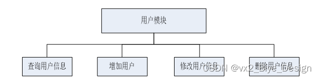本系统的用户包括管理员、用户,用户模块的功能基本是相同的,用户模块结构图为例进行分析,如下图:
