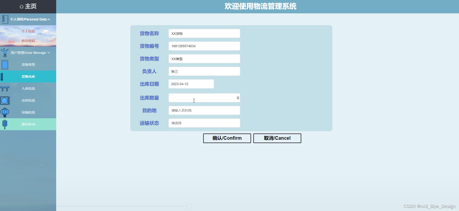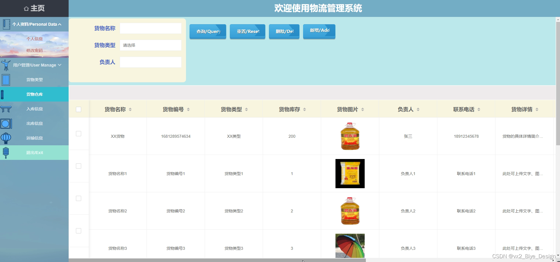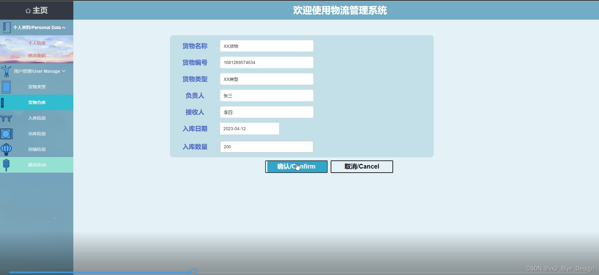 (3)根据系统的需求分析和设计,实现了系统具体功能,最终的系统功能构件主要有用户管理、货物仓库、货物类型、入库信息、出库信息、运输信息等。通过各项功能的协同操作,解决了传统的系统功能单一,信息相互不能共享的问题,实现了系统的协同操作,提高了企业人力资源管理的水平和效率,同时提高了企业管理的科学性。