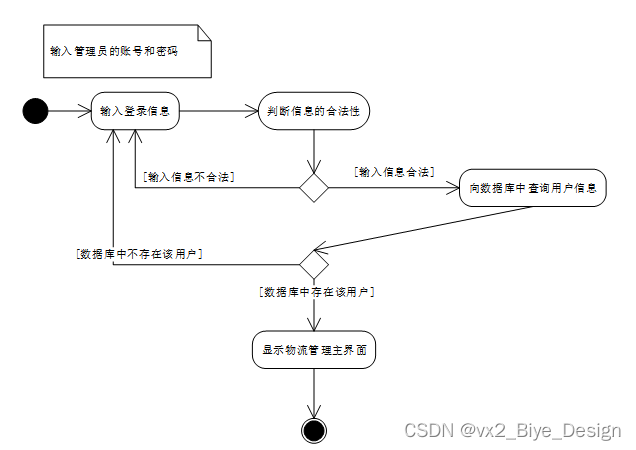 总体业务流程:以管理员的身份在登录页面输入账号和密码,经过数据库身份验证,验证成功后登录系统主页,可以使用系统,管理系统等功能操作 。