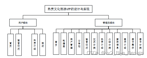 系统架构图属于系统设计阶段,系统架构图只是这个阶段一个产物,系统的总体架构决定了整个系统的模式,是系统的基础。基于Android的热贡文化旅游APP的设计与实现的整体结构设计如图4-2所示。