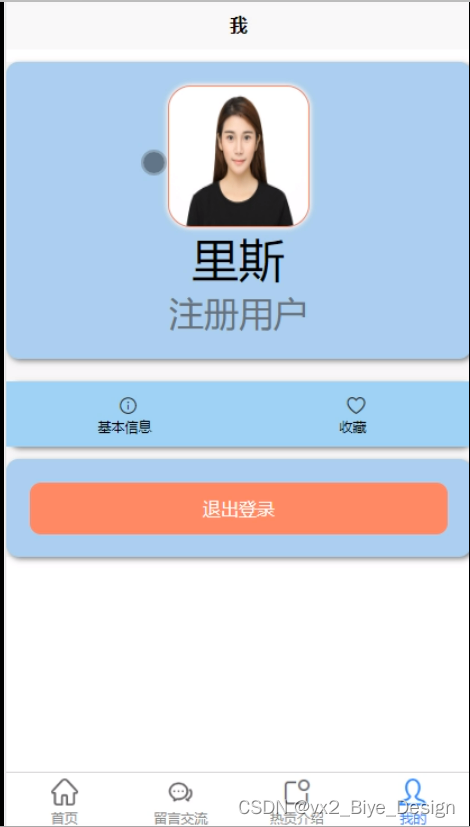 我的,在我的页面可以查看基本信息、我的收藏管理等详细信息并进行相应操作,如图5-5所示。